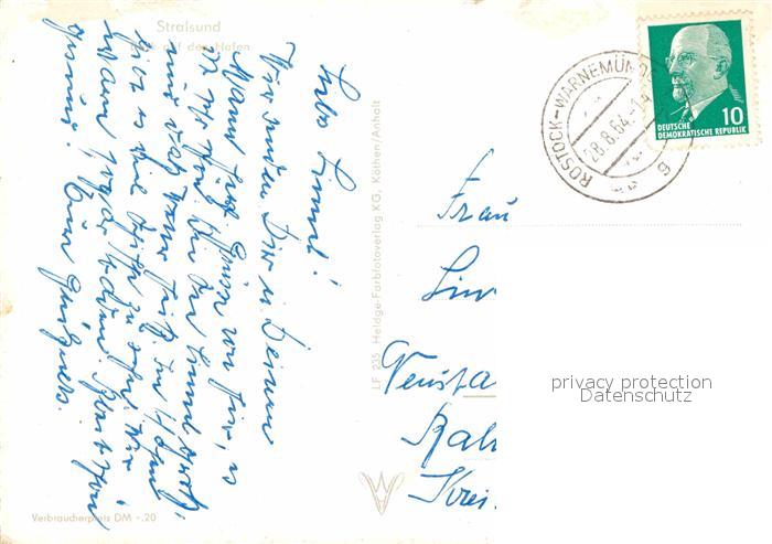 72854786 alte Postkarte Stralsund Mecklenburg Vorpommern Hafen postalisch gelaufen Erhaltung siehe scans [AndreD76] KatCode: 11110013005000