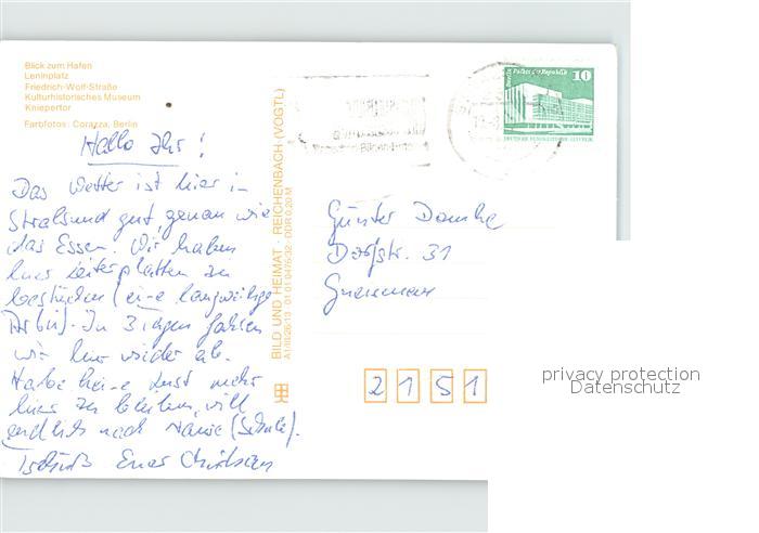72413800 alte Postkarte Stralsund Mecklenburg Vorpommern Hafen Leninplatz Friedrich Wolf Strasse Museum Kniepertor postalisch gelaufen Erhaltung siehe scans KatCode: 11110013005000