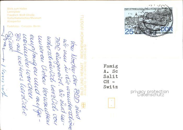 72585645 alte Postkarte Stralsund Mecklenburg Vorpommern Hafen Leninplatz Kniepertor Kulturhistorisches Museum postalisch gelaufen Erhaltung siehe scans [LiesaD40] KatCode: 11110013005000