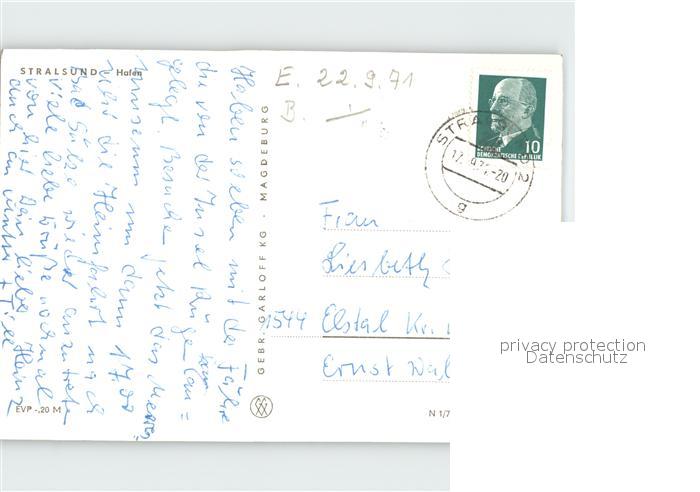 72078854 alte Postkarte Stralsund Mecklenburg Vorpommern Hafen Teilansicht postalisch gelaufen KatCode: 11110013005000