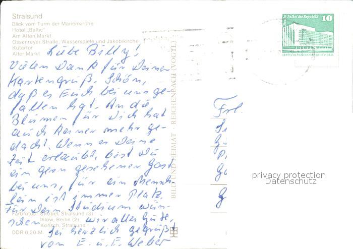 72375610 alte Postkarte Stralsund Mecklenburg Vorpommern Hotel Baltic Alter Markt Ossenreyer Strasse postalisch gelaufen Erhaltung siehe scans KatCode: 11110013005000