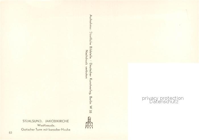 73624393 Stralsund Mecklenburg Vorpommern Jakobikirche Westfassade Gotischer Turm postalisch nicht gelaufen Erhaltung siehe scans [FriedD77] KatCode: 11110013005000