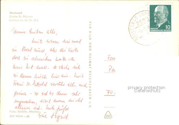 72135317 alte Postkarte Stralsund Mecklenburg Vorpommern Kirche St Marien 14./15. Jhdt. postalisch gelaufen Erhaltung siehe scans KatCode: 11110013005000
