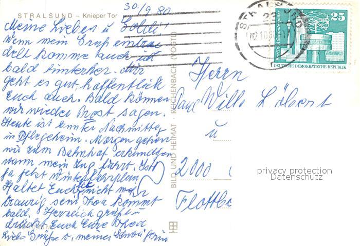 72951567 alte Postkarte Stralsund Mecklenburg Vorpommern Knieper Tor postalisch gelaufen Erhaltung siehe scans [FriedD77] KatCode: 11110013005000