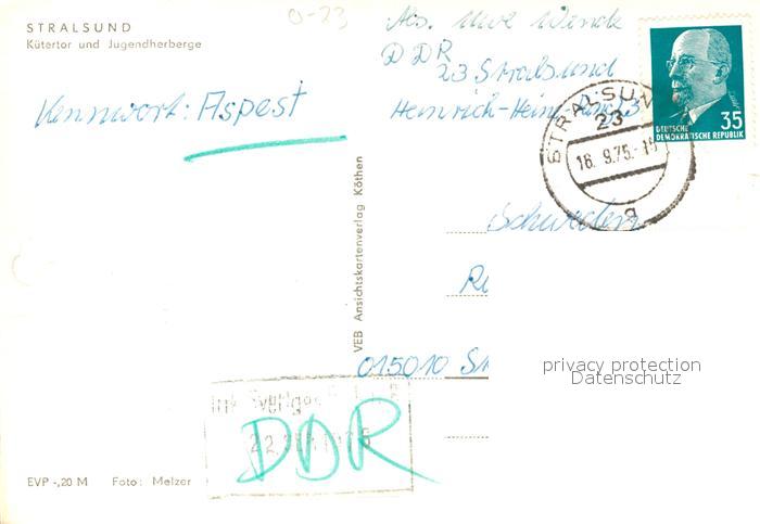 73030646 alte Postkarte Stralsund Mecklenburg Vorpommern Kuetertor Jugendherberge postalisch gelaufen Erhaltung siehe scans [KathaD81] KatCode: 11110013005000