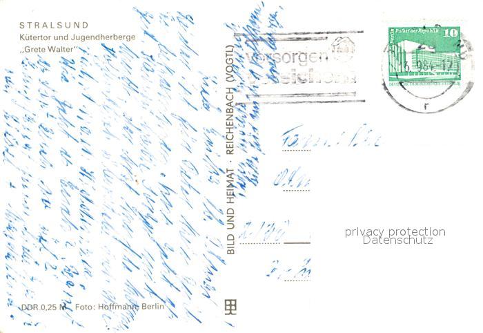 73134409 alte Postkarte Stralsund Mecklenburg Vorpommern Kuetertor und Jugendherberge Grete Walter postalisch gelaufen Erhaltung siehe scans [FriedD77] KatCode: 11110013005000