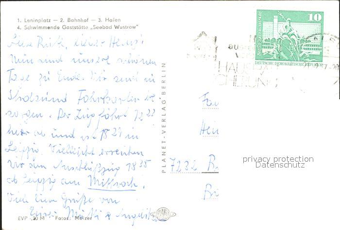 71935135 alte Postkarte Stralsund Mecklenburg Vorpommern Leninplatz Bahnhof Hafen Schwimmende Gaststaette Seebad Wustrow postalisch gelaufen Erhaltung siehe scans KatCode: 11110013005000