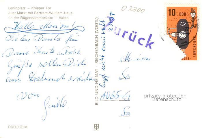 72941228 alte Postkarte Stralsund Mecklenburg Vorpommern Leninplatz Knieper Tor Alter Markt Bertram-Wulflam-Haus postalisch gelaufen Erhaltung siehe scans [NatalD47] KatCode: 11110013005000