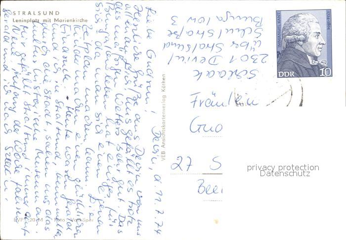 72330004 alte Postkarte Stralsund Mecklenburg Vorpommern Leninplatz Marienkirche postalisch gelaufen Erhaltung siehe scans KatCode: 11110013005000