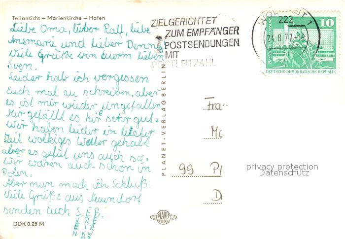 73593509 alte Postkarte Stralsund Mecklenburg Vorpommern Panorama Marienkirche Hafen postalisch gelaufen Erhaltung siehe scans [FriedD77] KatCode: 11110013005000
