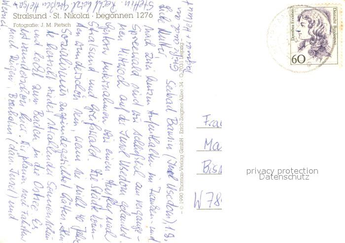 73622507 alte Postkarte Stralsund Mecklenburg Vorpommern Panorama mit St Nikolai Kirche postalisch gelaufen Erhaltung siehe scans [WerneD78] KatCode: 11110013005000