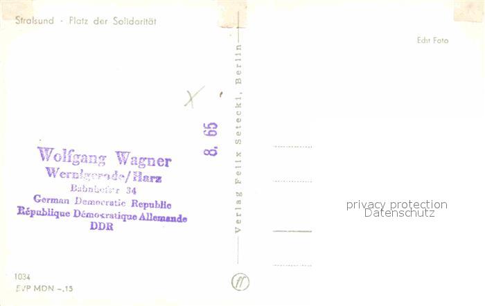 72759478 Stralsund Mecklenburg Vorpommern Platz der Solidarit postalisch nicht gelaufen Erhaltung siehe scans [LiesaD40] KatCode: 11110013005000