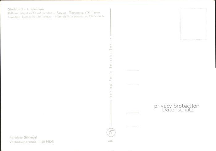 72332327 Stralsund Mecklenburg Vorpommern Rathaus 13. Jhdt. postalisch nicht gelaufen Erhaltung siehe scans KatCode: 11110013005000