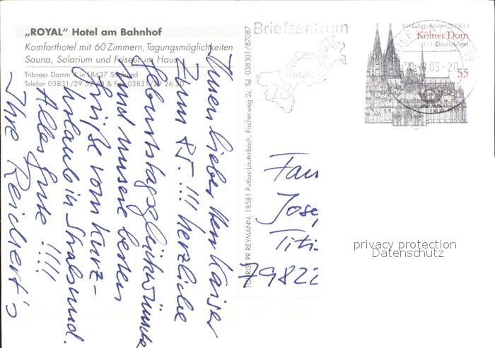 72329119 alte Postkarte Stralsund Mecklenburg Vorpommern Royal Hotel am Bahnhof postalisch gelaufen Erhaltung siehe scans KatCode: 11110013005000