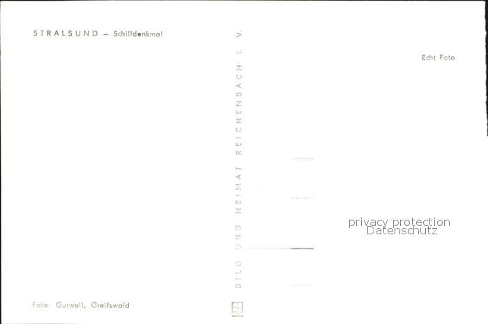 72474144 Stralsund Mecklenburg Vorpommern Schilldenkmal Statue postalisch nicht gelaufen Erhaltung siehe scans KatCode: 11110013005000