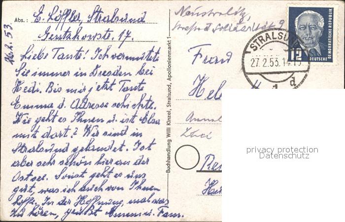72011129 alte Postkarte Stralsund Mecklenburg Vorpommern Stadtbild postalisch gelaufen Erhaltung siehe scans KatCode: 11110013005000