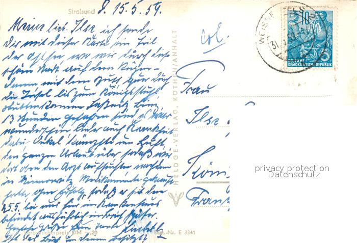 73155774 alte Postkarte Stralsund Mecklenburg Vorpommern Stadtblick postalisch gelaufen Erhaltung siehe scans [WerneD78] KatCode: 11110013005000
