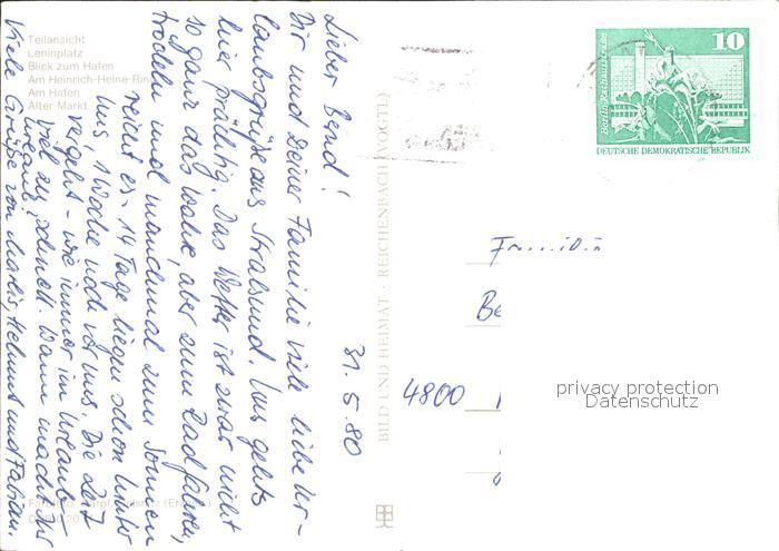 72370008 alte Postkarte Stralsund Mecklenburg Vorpommern Teilansicht Blick zum Hafen Leninplatz Alter Markt postalisch gelaufen Erhaltung siehe scans KatCode: 11110013005000