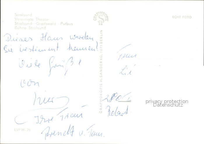 72094686 Stralsund Mecklenburg Vorpommern Theater postalisch nicht gelaufen Erhaltung siehe scans KatCode: 11110013005000