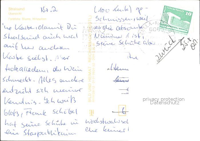 72049043 alte Postkarte Stralsund Mecklenburg Vorpommern uebersicht Kirche Meerblick postalisch gelaufen Erhaltung siehe scans KatCode: 11110013005000