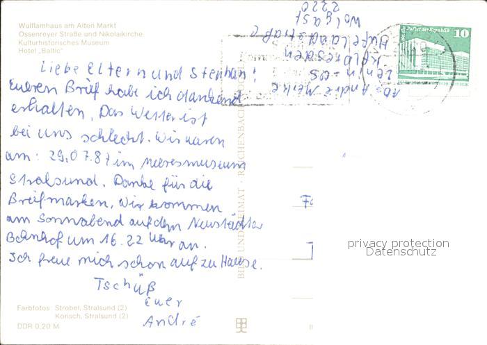 72123489 alte Postkarte Stralsund Mecklenburg Vorpommern Wulflamhaus Nikolaikirche Hotel Baltic Kulturhistorisches Museum postalisch gelaufen Erhaltung siehe scans KatCode: 11110013005000