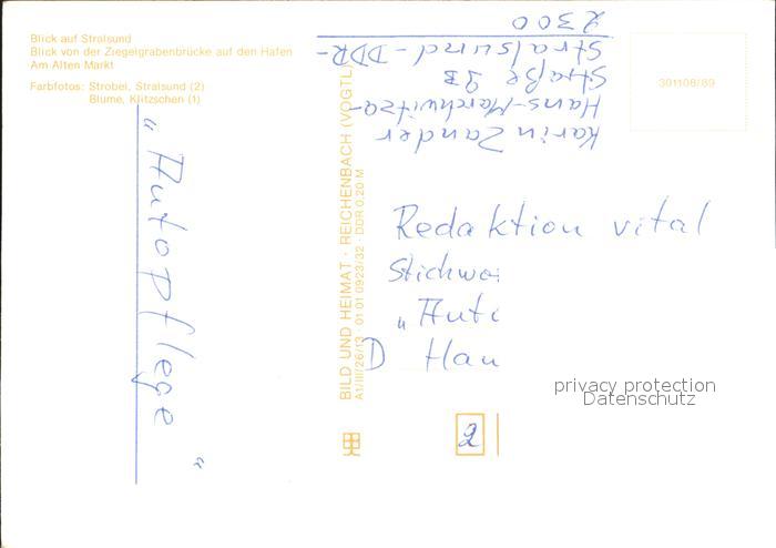 72304644 Stralsund Mecklenburg Vorpommern Ziegelgrabenbruecke Hafen Alte Markt postalisch nicht gelaufen Erhaltung siehe scans KatCode: 11110013005000