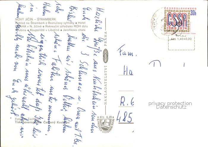 old postcard Stramberk Schwimmba Campig Novy Jicin postalisch gelaufen Erhaltung siehe scans