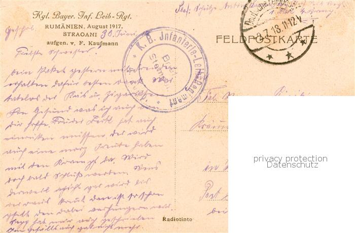 73803554 Straoani RO Kgl Bayer Inf Leib Rgt an der Kapelle postalisch gelaufen Erhaltung siehe scans [FriedD77] old postcard Frie Katcode 11430