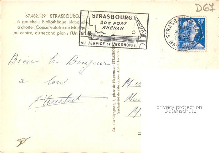 13826051 Strasbourg 67 Alsace Bibliotheque Nationale Conservatoire de Musique l’Universite postalisch gelaufen Erhaltung siehe scans [FriedD77] carte postale Frie Katcode 11170067867482