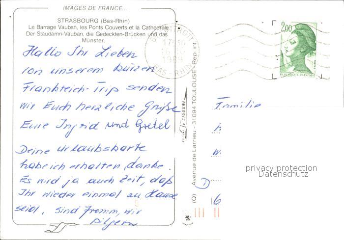 12454871 carte postale Strasbourg Alsace Barrage Vauban Ponts Couverts Cathedrale Staudamm Bruecke Muenster Fliegeraufnahme postalisch gelaufen Erhaltung siehe scans KatCode: 11170067867482