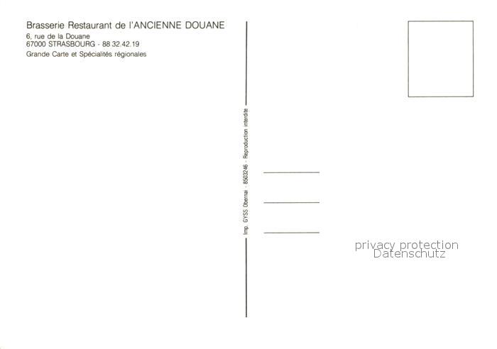 13592242 Strasbourg Alsace Brasserie Restaurant de L Ancienne Douane postalisch nicht gelaufen Erhaltung siehe scans [LiesaD40] Lies Katcode 11170067867482