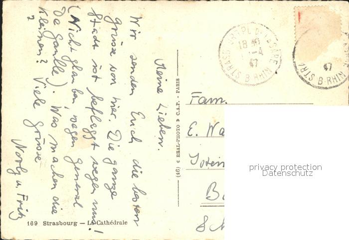 12356619 carte postale Strasbourg Alsace Cathedrale postalisch gelaufen Erhaltung siehe scans KatCode: 11170067867482