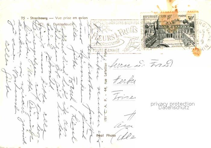 12880757 carte postale Strasbourg Alsace Fliegeraufnahme postalisch gelaufen Erhaltung siehe scans [KathaD81] KatCode: 11170067867482