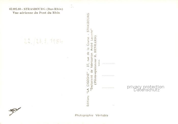 13504268 Strasbourg Alsace Fliegeraufnahme Pont du Rhin postalisch nicht gelaufen Erhaltung siehe scans [KathaD81] KatCode: 11170067867482