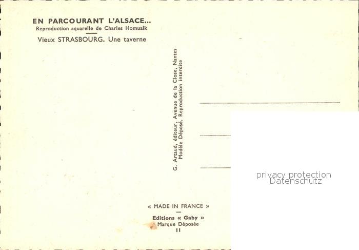 12538786 Strasbourg Alsace Gaststaette Aquarell Charles Homualk postalisch nicht gelaufen Erhaltung siehe scans [KathaD75 dp141box] KatCode: 11170067867482