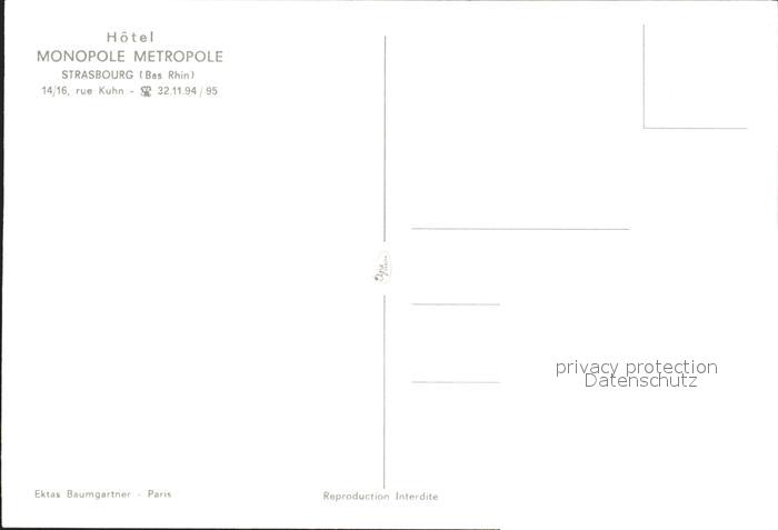 12263372 Strasbourg Alsace Hotel Monopole Metropole postalisch nicht gelaufen Erhaltung siehe scans KatCode: 11170067867482