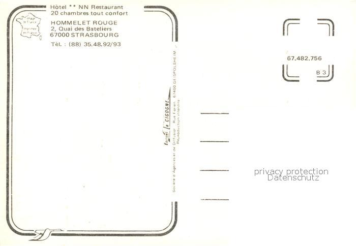 Strasbourg Alsace Hôtel Restaurant Hommelet Rouge postalisch nicht gelaufen Erhaltung siehe scans [FriedD77]