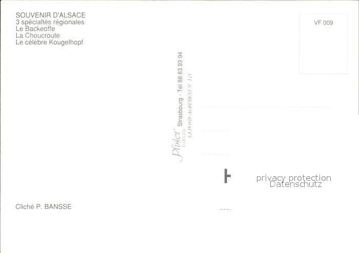 12493637 Strasbourg Alsace L’Alsace gourmande Specialites regionales Backeoffe Choucroute Kougelhopf Costumes Trachten postalisch nicht gelaufen Erhaltung siehe scans KatCode: 11170067867482