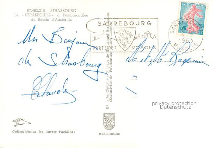 13617485 Strasbourg Alsace Le Strasbourg a l’embarcadere du Bassin d Austerlitz postalisch gelaufen Erhaltung siehe scans [WerneD78] carte postale Wern Katcode 11170067867482