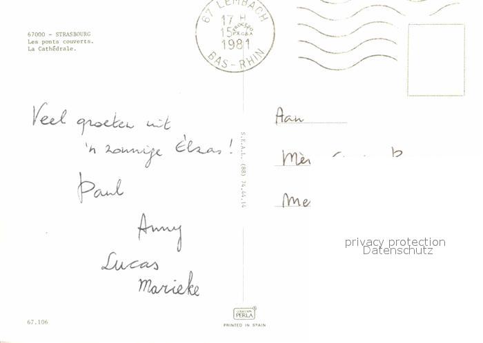 12663701 carte postale Strasbourg Alsace Les ponts couverts Cathedrale Gedeckte Bruecken Kathedrale postalisch gelaufen Erhaltung siehe scans [FriedD77] KatCode: 11170067867482