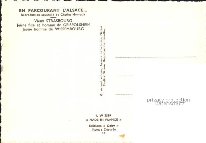 12537851 Strasbourg Alsace Maenner von Geispolsheim Wissembourg Aquarell Charles Homualk postalisch nicht gelaufen Erhaltung siehe scans [KathaD75 dp141box] KatCode: 11170067867482