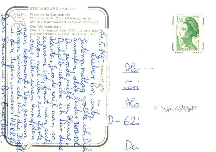 13160893 carte postale Strasbourg Alsace Muensterplatz Hirschapotheke Kammerzellhaus postalisch gelaufen Erhaltung siehe scans [WerneD78] KatCode: 11170067867482