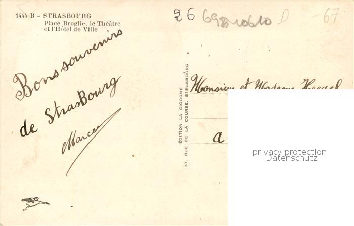 13579682 carte postale Strasbourg Alsace Place Broglie le Theatre et l’Hotel de Ville postalisch gelaufen Erhaltung siehe scans [WerneD78] KatCode: 11170067867482