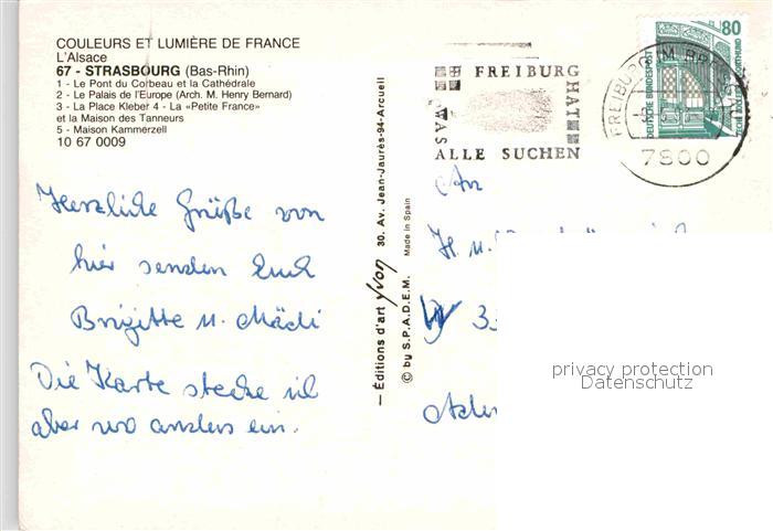 12868607 carte postale Strasbourg Alsace Pont du Corbeau Palais de Europe Place Kleber La Petite France Maison Kammerzell postalisch gelaufen Erhaltung siehe scans [WerneD78] KatCode: 11170067867482