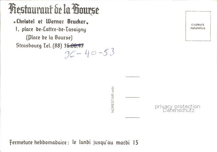 12568724 Strasbourg Alsace Restaurant de la Bourse postalisch nicht gelaufen Erhaltung siehe scans [KathaD79] KatCode: 11170067867482
