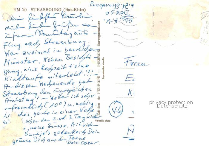 12831732 carte postale Strasbourg Alsace Stadtansichten postalisch gelaufen Erhaltung siehe scans [KathaD81] KatCode: 11170067867482
