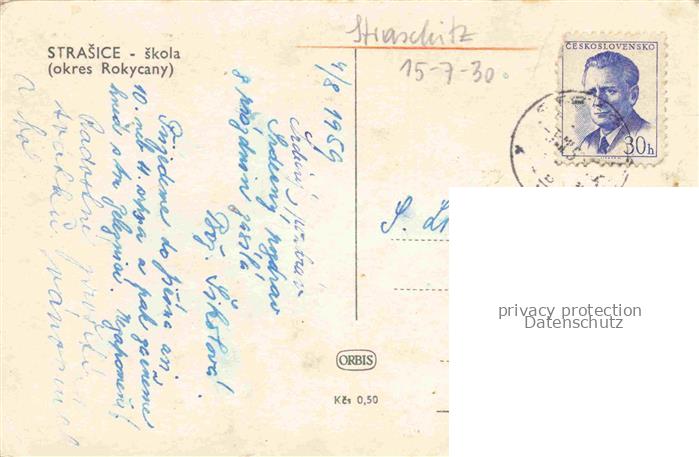 74033977 old postcard Straschitz Strasice Rokycany Rokitzan CZ Skola postalisch gelaufen Erhaltung siehe scans [WerneD78] KatCode: 11520