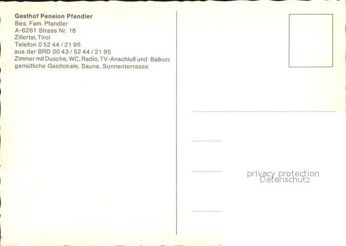 72492954 Strass Tirol Gasthof Pension Pfandler postalisch nicht gelaufen Erhaltung siehe scans KatCode: 11390