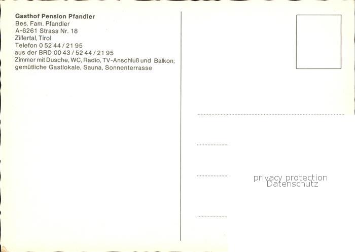 72417638 Strass Zillertal Gasthof Pension Pfandler postalisch nicht gelaufen Erhaltung siehe scans KatCode: 11390335070930