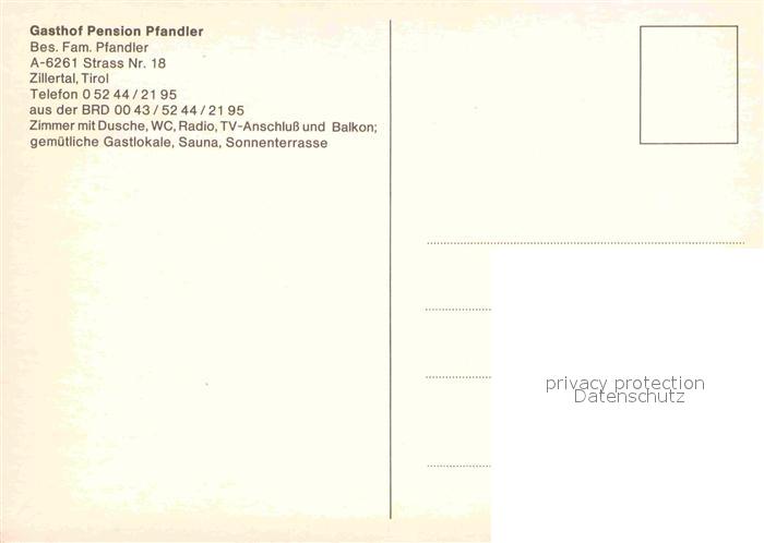 72623530 Strass Zillertal Gasthof Pension Pfandler postalisch nicht gelaufen Erhaltung siehe scans [NatalD47] KatCode: 11390335070930